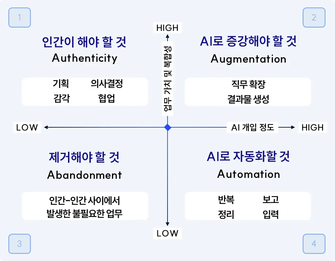 이 고민이 시작된다. 이때 도움이 되는 관점이 바로 AI와 인간의 역할을 나누는 매트릭스다.