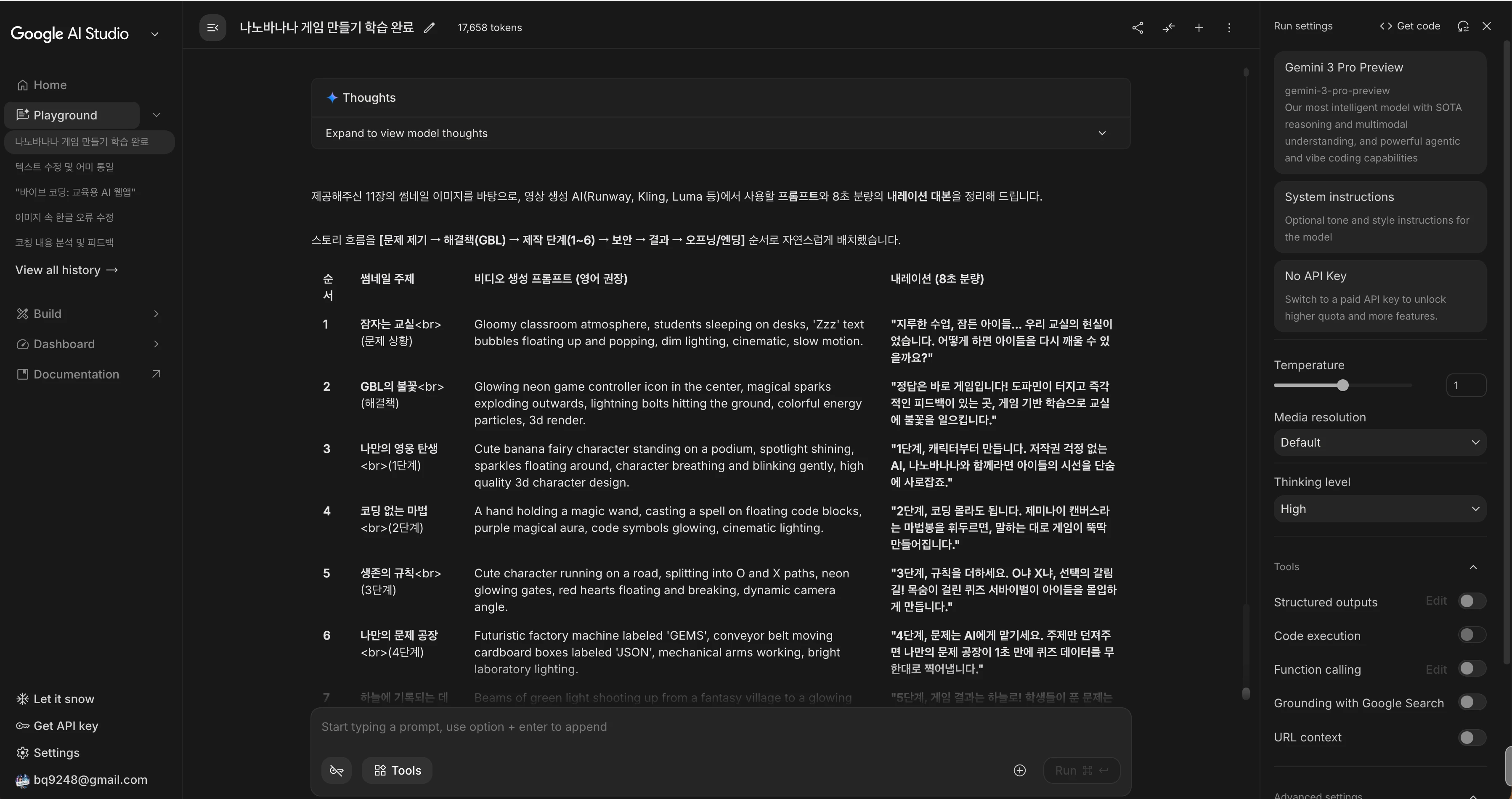 제미나이로 장면별 프롬프트 생성