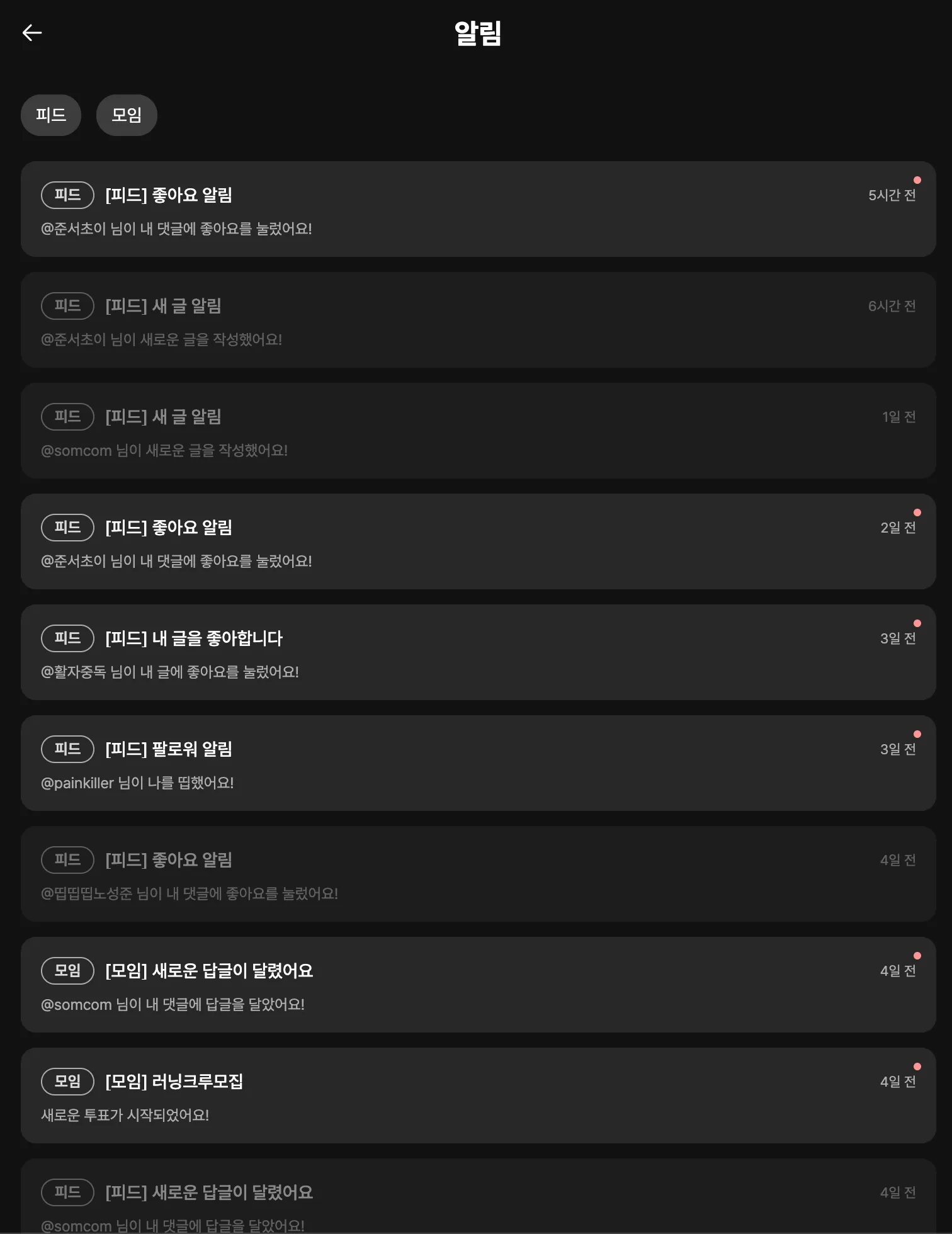 THIP에 드디어 푸시알림 & 알림센터 기능이 열렸습니다! 이제 앱을 켜지 않아도 실시간으로 소식을 받아보고, 알림센터에서 한눈에 확인할 수 있어요. ✨ 새롭게 추가된 알림 종류 🔔 피드 알림 누군가 나를 띱(팔로우) 했을 때 내 글에 댓글/답글이 달렸을 때 내 글이나 댓글/답글에 좋아요가 눌렸을 때 띱한 사람이 새 글을 올렸을 때 📚 모임 알림 내 기록·투표에 댓글/답글/좋아요가 달렸을 때 모임방에서 새로운 기록이나 투표가 시작됐을 때 모집 조기 마감/활동 시작 알림 내가 방장일 때, 새로운 독서메이트가 방에 참여한 경우 🛠️ 어떻게 활용하나요? 알림을 클릭하면 바로 해당 피드 글이나 모임방 메인페이지 혹은 기록장으로 이동합니다. 놓친 활동이 있더라도 알림센터에서 다시 확인할 수 있어요! 푸시알림은 아직 안드로이드 앱 환경에서만 사용가능해요.