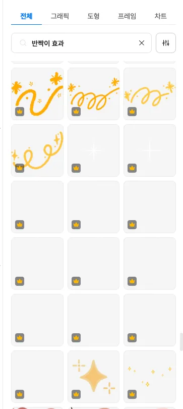첨부사진 1) 반짝이 효과 검색 시, 흰색 요소는 일일이 클릭해봐야 확인 가능