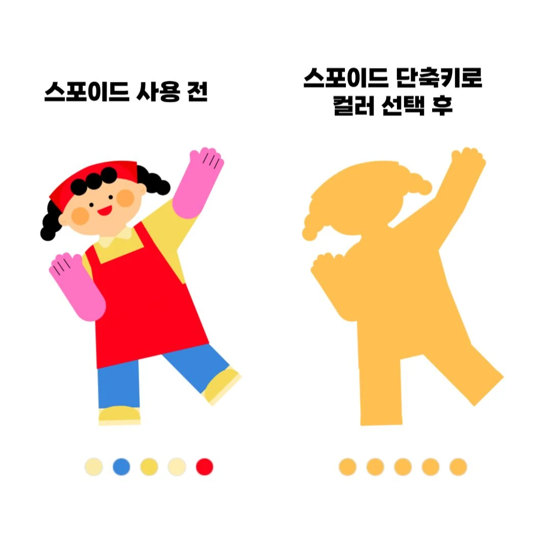 - 여러 색상 컴포넌트 선택 후 스포이드 사용 시, 선택 색상으로 모두 변경됩니다!