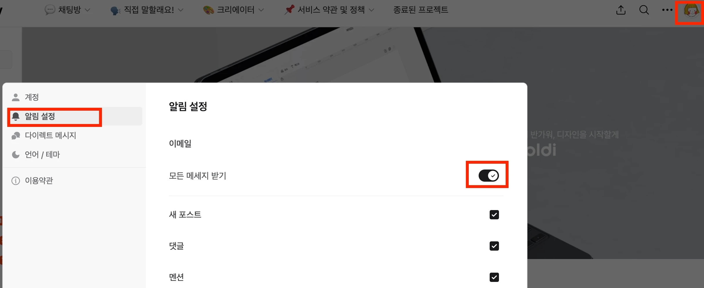 이미지를 확인하시고 알림설정을 바꿔보세요~
