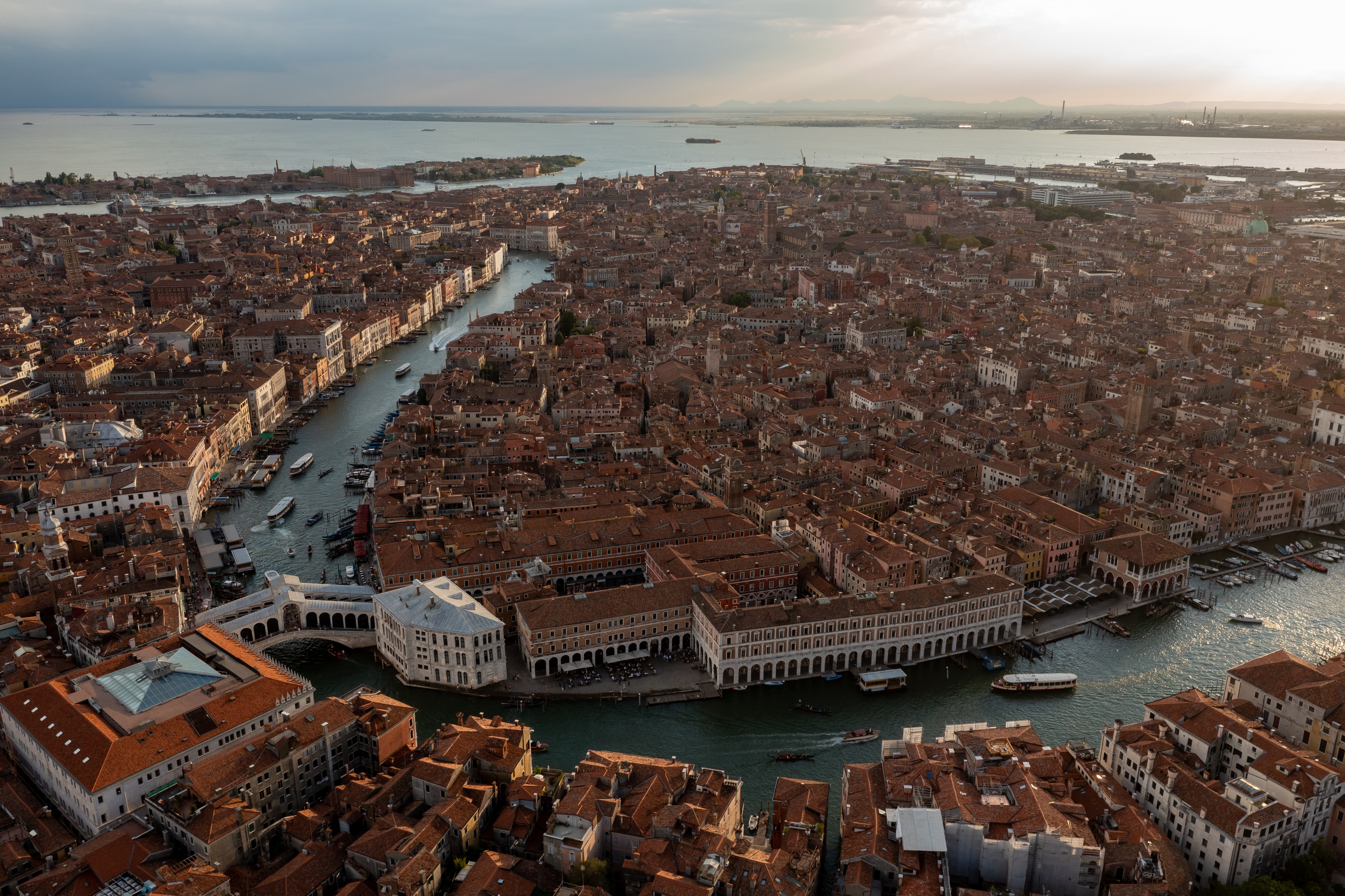 威尼斯主岛距离大陆约4公里,最初只能乘船到达。