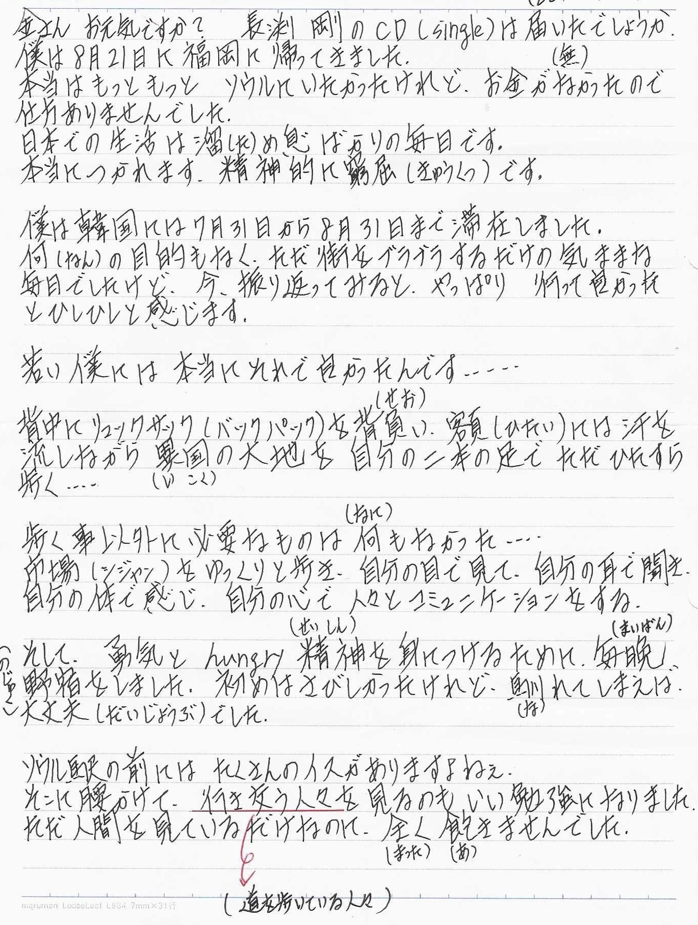 金さん お元気ですか?長渕剛のCD(single)は届いたでしょうか。僕は8月21日に福岡に帰ってきました。
