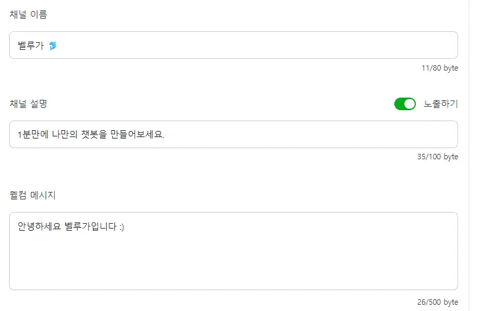 채널 만들기 버튼을 클릭하면 아래 화면이 나타납니다.