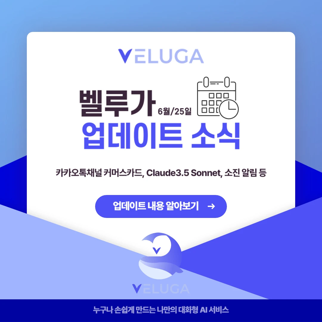 🎉 에이전트 빌더가 새롭게 찾아왔어요! 나만의 AI 에이전트, 코드 없이 뚝딱 만들어 보세요. 안녕하세요, 벨루가팀이에요! 👋 많은 분들이 기다려 주신 에이전트 빌더가 업데이트되었어요. 이번 업데이트로 더 다양한 노드와 기능을 활용해서 나만의 AI 에이전트를 자유롭게 설계할 수 있게 되었답니다. 다양한 기능들이 있지만, 간단하게 소개해드릴게요! 📌 이번 업데이트, 뭐가 달라졌나요? 🧠 핵심 기능 노드 AI 호출 노드 원하는 AI 모델을 골라서 프롬프트를 실행할 수 있어요. 시스템 프롬프트와 유저 프롬프트를 분리해서 더 정교한 응답을 설계할 수 있고, 창의성 조절·반복 제어 같은 고급 설정도 지원해요. 문서 검색 노드 채널에 학습시킨 문서를 검색해서 AI에게 전달할 수 있어요. 키워드/벡터 하이브리드 검색 비중도 직접 조절할 수 있답니다. 🔀 논리 제어 노드 조건 분기 노드 "만약 A이면 → 이쪽으로, 아니면 → 저쪽으로" 같은 흐름을 만들 수 있어요. 여러 개의 조건을 추가하고, 조건에 맞지 않을 때의 기본 경로(Fallback)도 설정할 수 있어요. ƒ 함수 노드 숫자 더하기 · 빼기 · 곱하기 · 나누기