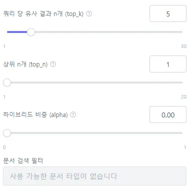 : 검색 방법의 키워드 / 벡터 비중을 결정하는 부분이에요.