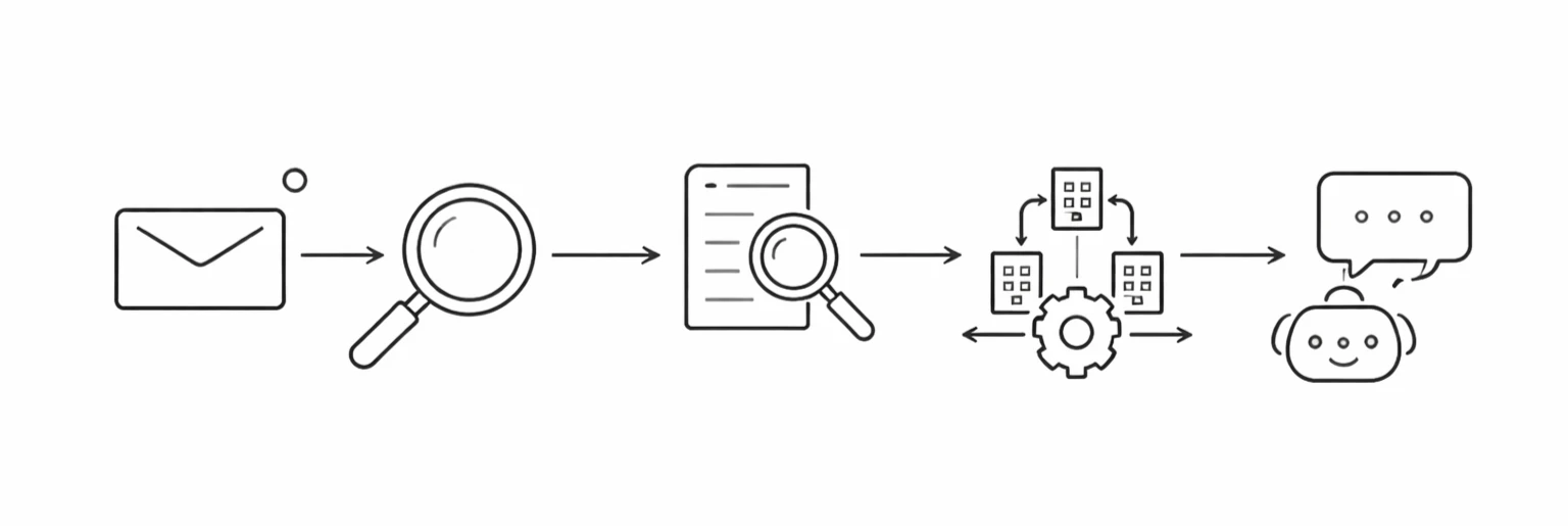 고객 문의를 분석하고 → 관련 문서를 찾고 → 적절한 부서로 라우팅 → 맞춤형 답변 생성