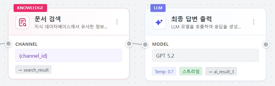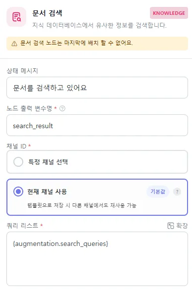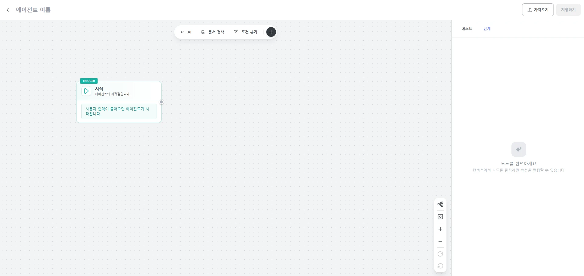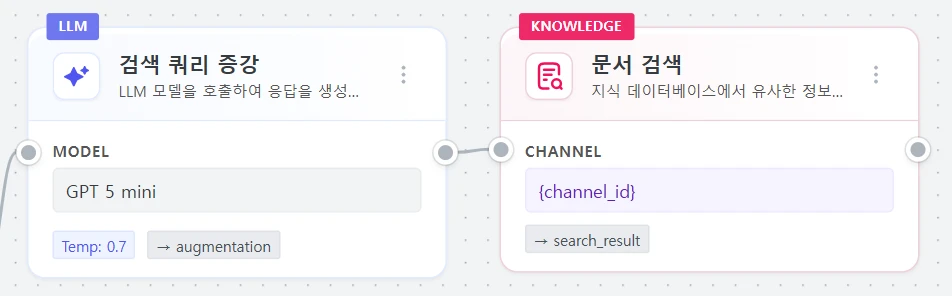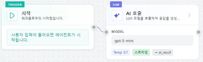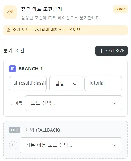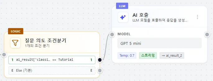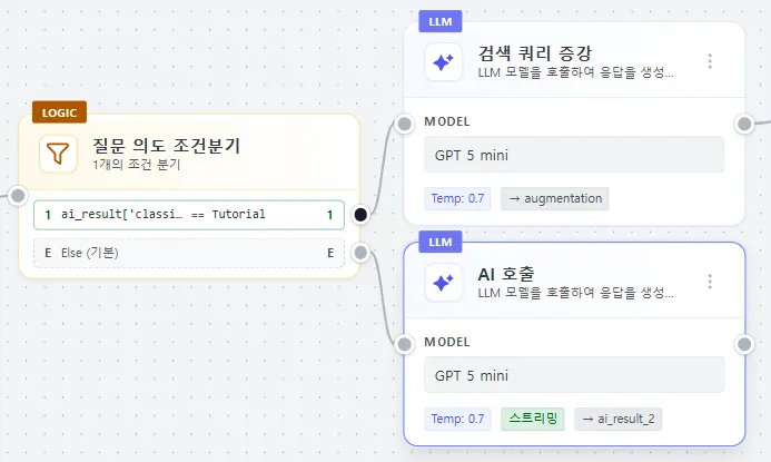 | 노드 추가/연결 | 시작 노드 여러 노드를 연결하여 흐름 구성 |
