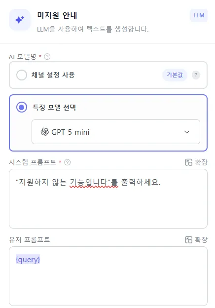 - 사용 형식: `{변수명}`, AI 출력 키는 `변수명['키']`