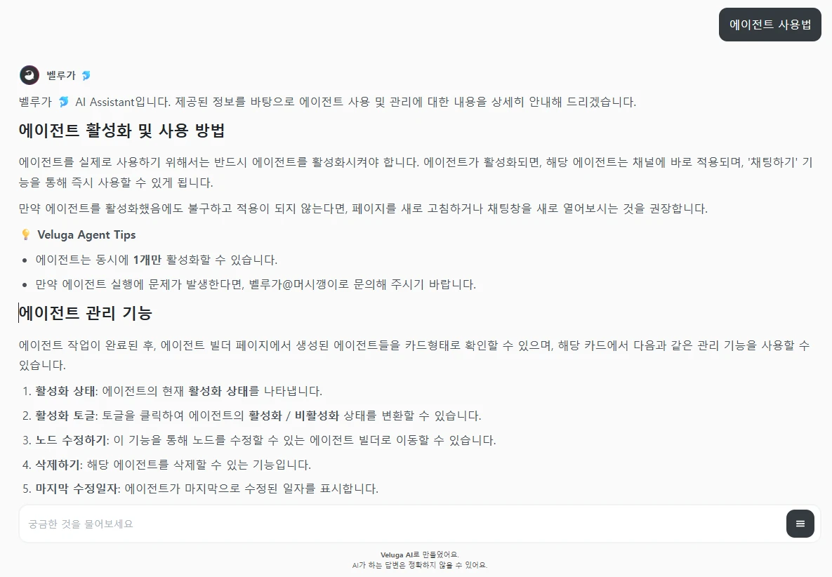 | 이름 변경 | 에이전트 이름을 자유롭게 변경할 수 있어요 |