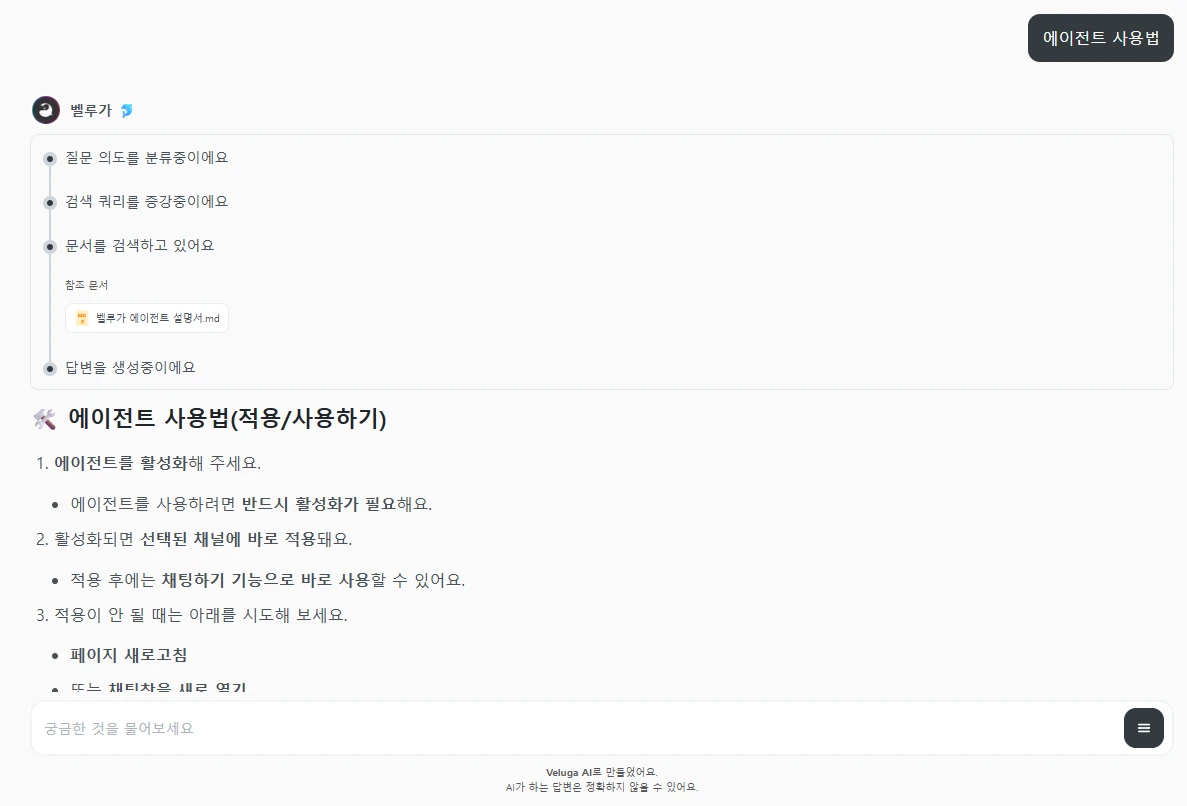 - query: "벨루가 에이전트 사용법" → {"classification": "Tutorial"}