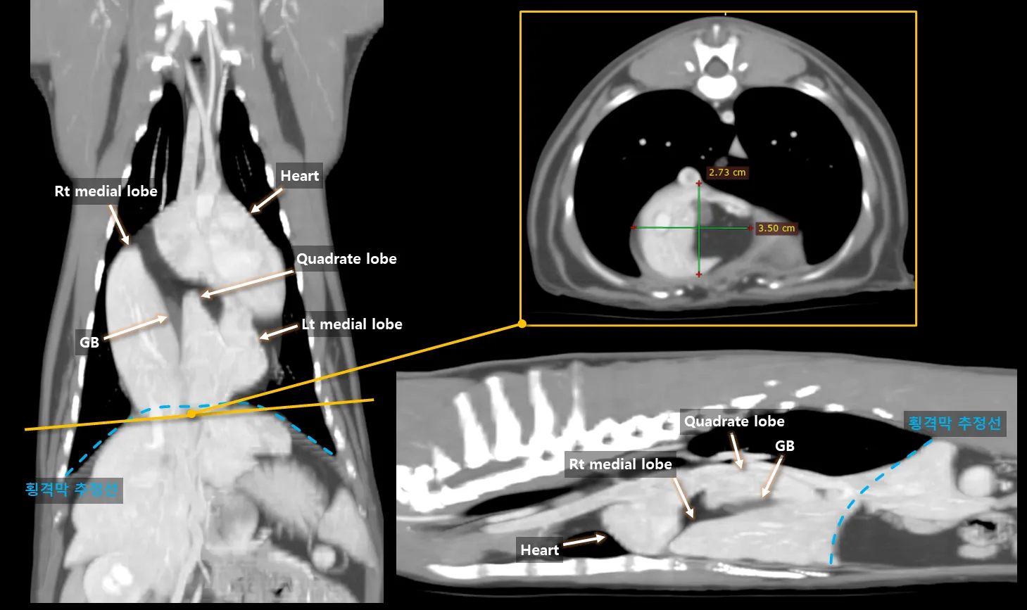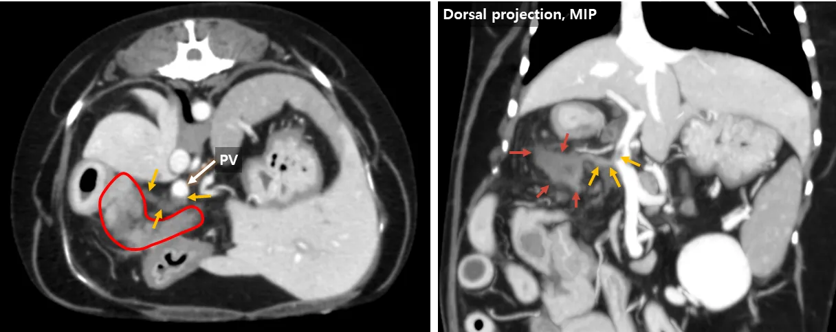 Summary Signalment λ₯μ€ννΈ, SF, 12y, 6.3kg CC: ꡬν Conclusion Gastroduodenal vein thrombosis Severe pancreatitis Possibly secondary fat stranding, EHBO and duodenitis Key findings μ·μ₯μ λΆκ·μΉν λ³μ°, μ’