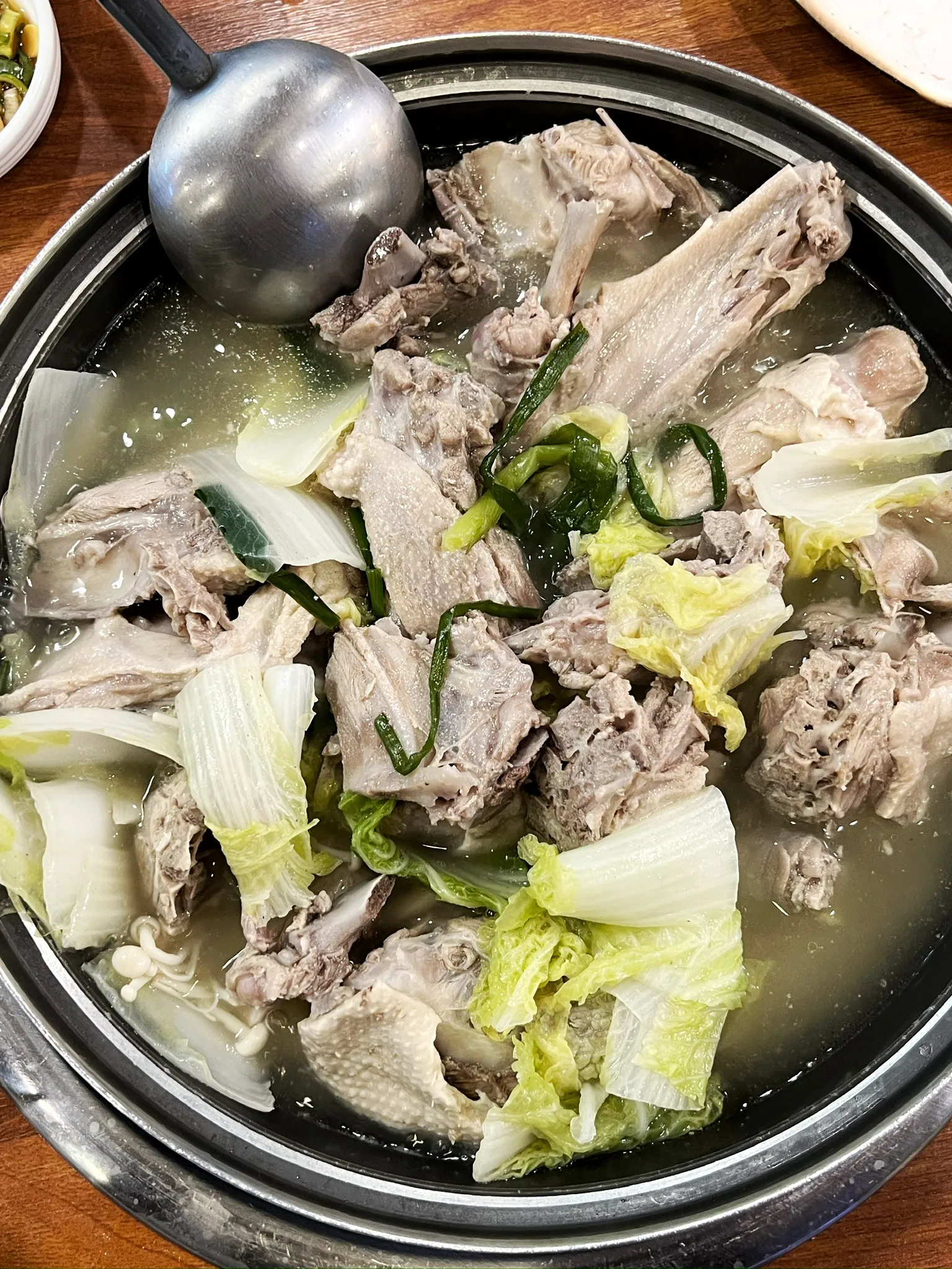 “거기 가면 오리죽을 먹어야 돼. 배부르면 포장을 해서라도 꼭.” 제주도에서 굳이 오리를 먹어봐야 한다고 권할 이유는 무엇이며 샤브샤브와 백숙을 제치고 마지막 순서로 내오는 희멀건한 죽이 킥이라고 몇 번씩 강조할 필요가 있는지 약간 의문스러웠지만 평소 음식에 큰 관심도 없는 사람이 이렇게까지 하니 오히려 더 궁금해진 게 사실이었다. 이후 몇 번 제주도를 다녀왔지만 동선이 맞지 않거나 우선순위에 밀리는 등 여러 이유로 방문하지 못한 채 시간이 흘렀다. 그동안 궁금증은 잘 숙성돼 기대감으로 변해갔다. 가게 이름은 삼강식당. 제주도 서귀포 중문관광단지 쪽에 있다. 그보다 동쪽에 위치한 서귀포 신시가지에 본점이 있지만 이곳을 추천한 해린이가 중문초와 중문중을 졸업한 중문피플이었으므로 우리에게는 중문점이 본점이나 마찬가지였다(사실 난 본점이 따로 있는 것도 중문점을 다녀오고 나서 알았다). 좋은 기회로 중문관광단지 내 호텔에 묵게 됐으니 이번이야말로 적기였다. 여행 일정을 결정하자마자 둘째날 저녁 메뉴를 오리로 못 박았다. 더위가 물러날 때를 잘 골라 떠나겠구나 싶었는데 여름의 꼬리가 이렇게 길 줄은 몰랐다. 걷는 것은 진작 포기했고 대신 전기자전거를 탔다. 15분 정도 달리니 묘하게 익숙한 풍경이 나왔다. 서귀포시 인구는 내 고향 김천(김밥천국 아님)과 인구가 비슷하고 역시 발전이 더딘 곳이다. 그러다 보니 어릴 적 쏘다니던 골목과 비슷한 모습을 갖추고 있던 게 아닌가 싶다. 좁은 길과 양차선으로 주차된 자동차들. 오래된 가게들. 그 사이로 삼강식당이 보였다. 가게 안은 더웠다. 에어컨과 선풍기가 여러 대 돌아가는 중이었지만 바깥 날씨부터 상당히 더웠던 데다 메뉴 특성상 주방과 각 테이블에서 계속해서 불을 써야 했으므로 어쩔 수 없었던 것 같다. 더위에 취약한 나로서는 다소 아쉬웠으나 오리도 나름 보양식이니 땀 한 번 쫙 빼는 셈 치면 그럭저럭 용인할 만했다. 무엇보다 그렇게 더운데도 이렇게 많은 손님으로 붐빈다는 데서 신뢰감이 생겼다. 메뉴가 하나인 것도 흡족했다. 오리 한 마리 세트.