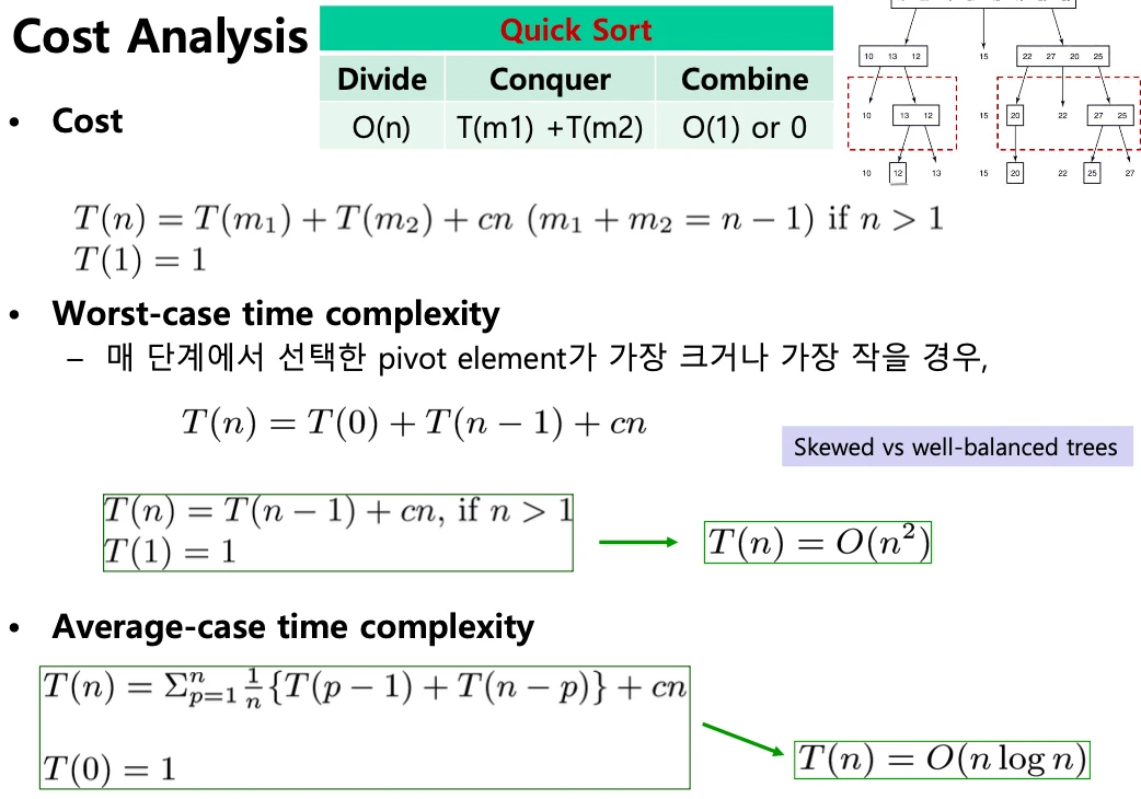 ③ | a > c | T(n) = O(n^{\log_c a}) | 하위 문제의 수가 급증함 → 분할 비용이 전체를 지배 |