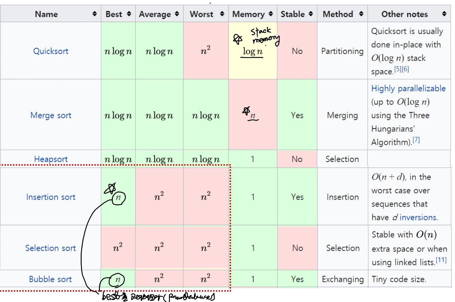 ③ Tail Recursion Optimization (TRO) | if (p - f ≥ b - p) 조건에서 한쪽만 재귀 호출 | 스택 깊이 O(log n)로 제한 → 메모리 효율 개선 |