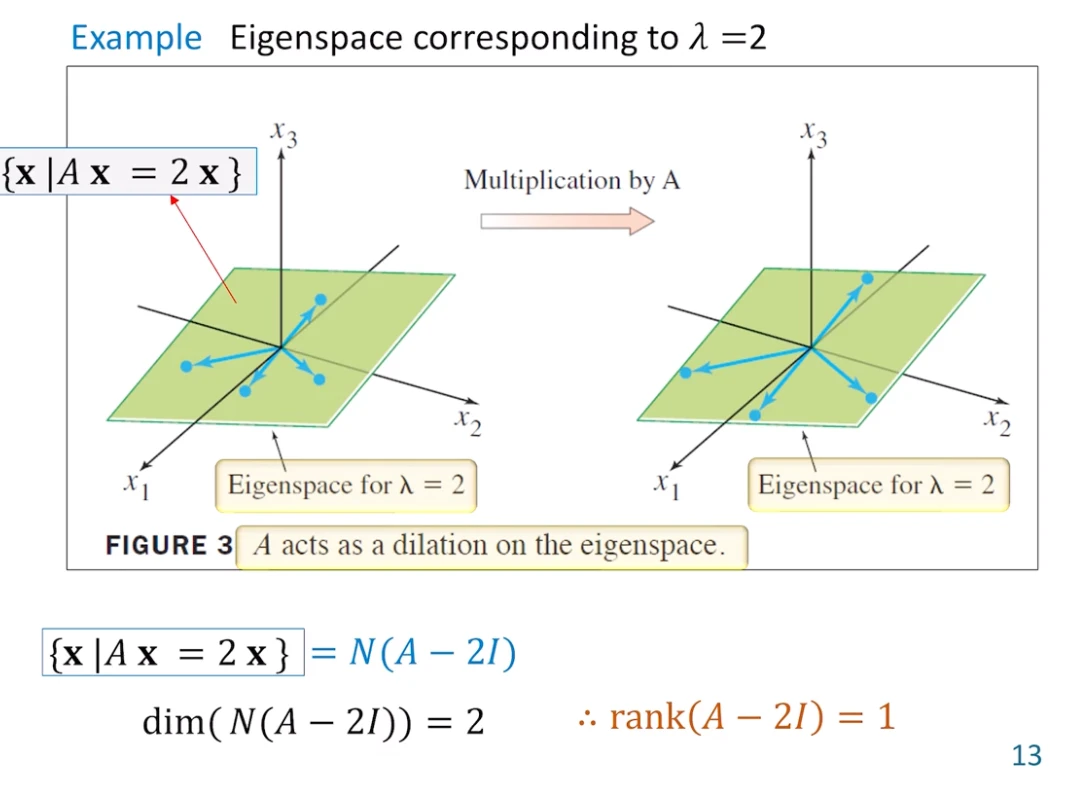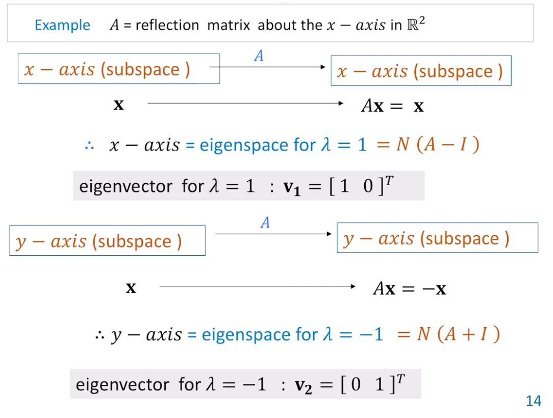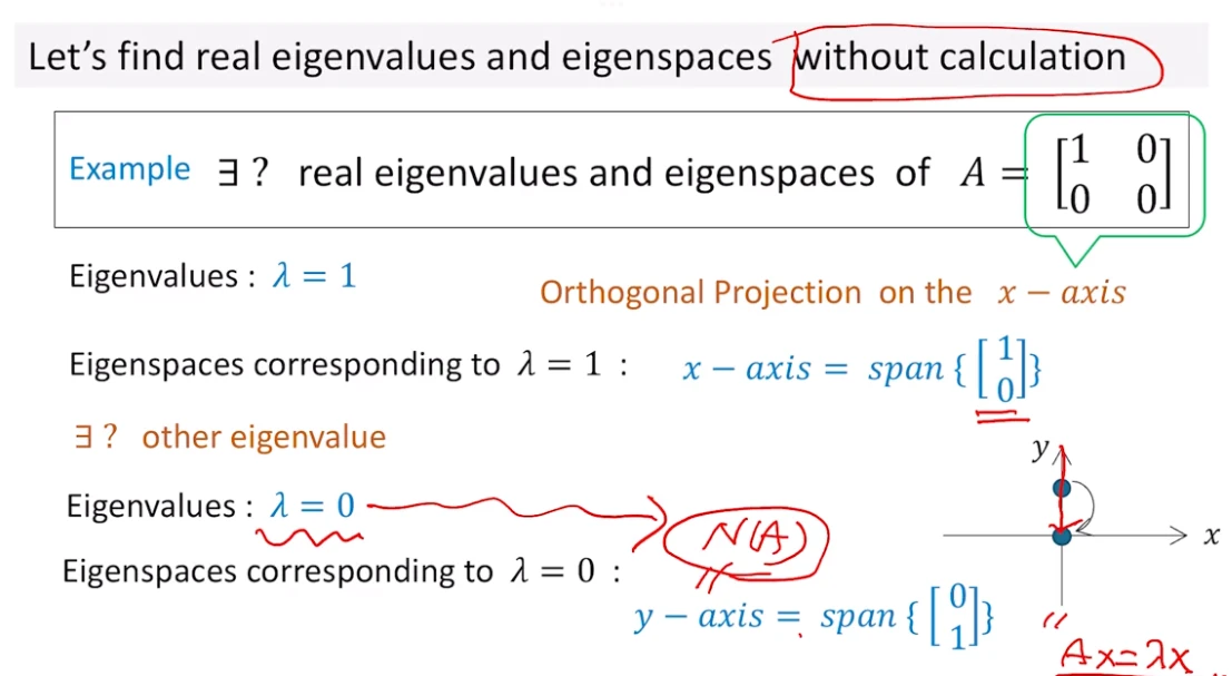 Column space가 아주 특수한 경우( A² = λA . 선형변환 A가 방향은 그대로 유지한 채 크기만 변해야 한다. ex. rank-1 행렬, projection-mat, scaled-projection-mat)이기에, Column space도 Eigenspace이다.