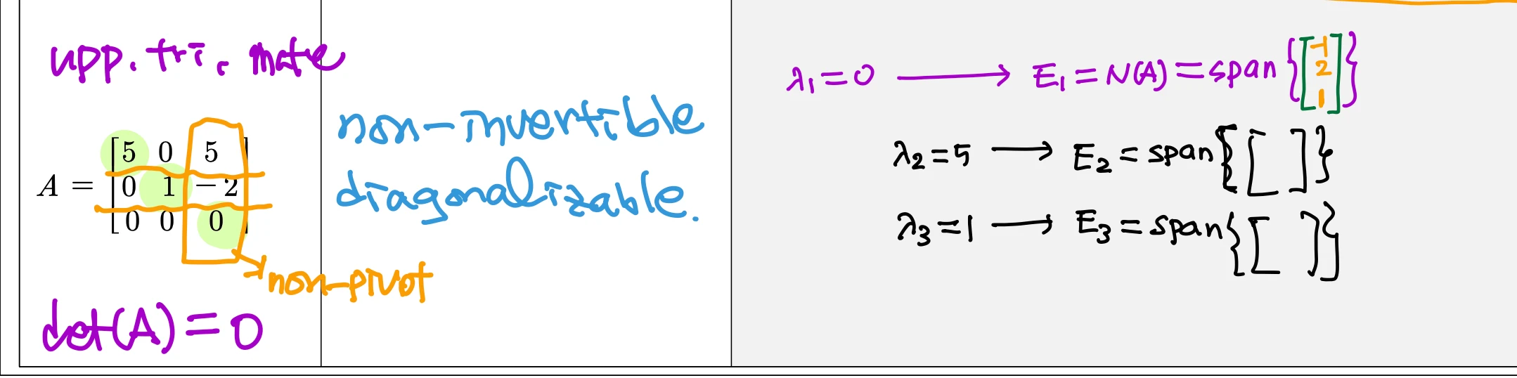 nullspace 의 dim이 0보다 크면 eig space이다.